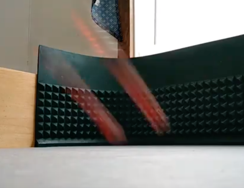 Grabbed stick right at a fifteen dollar table and held the dice for a while. The hard table surface called for no back spin. The dice stayed together landing in the zone just before the wall bouncing once and sitting down.